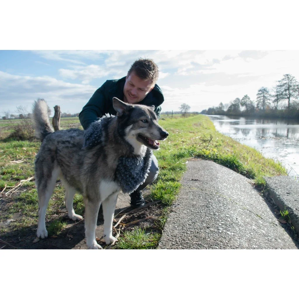 Deze heerlijk zachte microvezel handdoek zuigt water en vuil op als een spons. De uiteinden zijn voorzien van zakken waar je je handen in kunt steken, zodat je eenvoudig je hond droog kunt wrijven, zonder zelf nat of vies te worden. De Royal Dry handdoek is extreem duurzaam, super zacht en neemt geen geurtjes op. Ook is de handdoek antibacterieel en droogt erg snel.